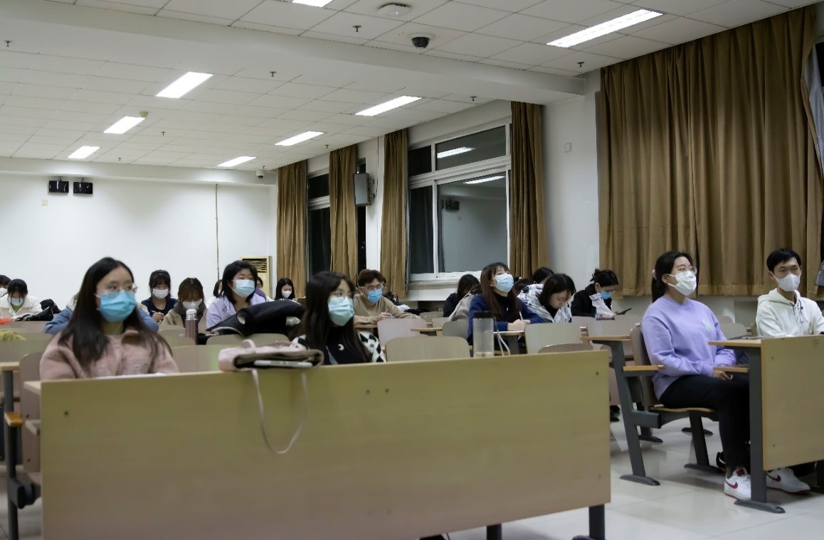 首先,由宋雪儿、朱芊逸同学向大家介绍了她们作为庆祝活动志愿者在宋家庄地铁站的服务历程与心得。两位向大家介绍了志愿服务的时间安排、具体工作、组长经历以及此次志愿服务所传达的志愿服务精神。