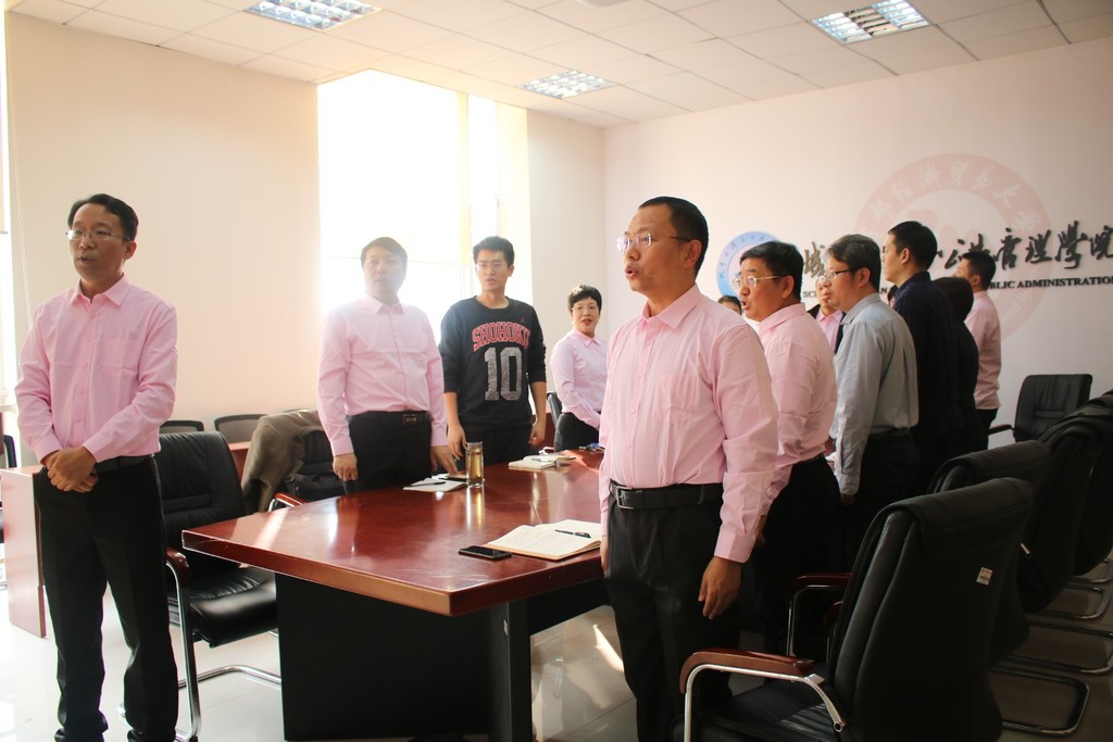 2019年10月23日下午,AV视频 党委书记刘文东以“使命担当从一城一地开始”为题讲授专题党课。理论学习中心组成员各系系主任、党支部书记以及学院行政党支部全体成员参加活动。活动由院长张国山主持。