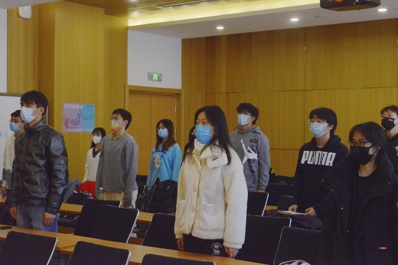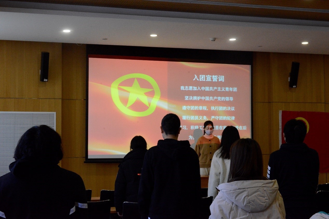 活动第四项,孙蕾老师做总结发言。孙蕾老师对团支部的建设工作给予了高度赞扬与肯定,希望可以再接再厉,同时也提出了几点要求。首先,希望各青年团员锐意进取,不断完善自身;其次,打造支部宣传平台,依托系列主题活动,增强团支部的凝聚力,进一步加强团支部建设;最后,严格遵守入党入团流程,铭记作为共青团员的责任与使命,为共产主义贡献自己的青春力量。之后,孙蕾老师和常泽蕊带领大家一同重温了入团誓词。