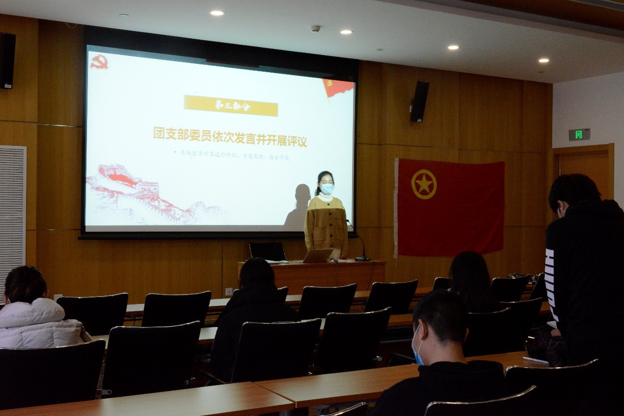 活动第三项,团干部进行工作总结,团员们进行自我评议。每个人都针对自己的职责、思想学习动态、现下的不足之处以及未来的改进方向做了诚恳的发言与分享。青年团员们纷纷表示学院开展的各项主题团日活动和党史学习会对其生活与学习都有深远的影响和很强的指导意义,今后将更加严格地要求自己,不忘初心,坚定不移跟党走,为中华民族的伟大复兴而奋斗。