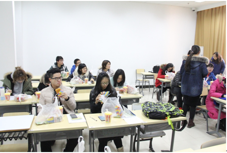 八点整,十五位志愿献血者来到准备教室备场,耐心地等待献血。志工部的成员为献血者们分发了献血登记表和爱心早餐,现场温暖而有序。