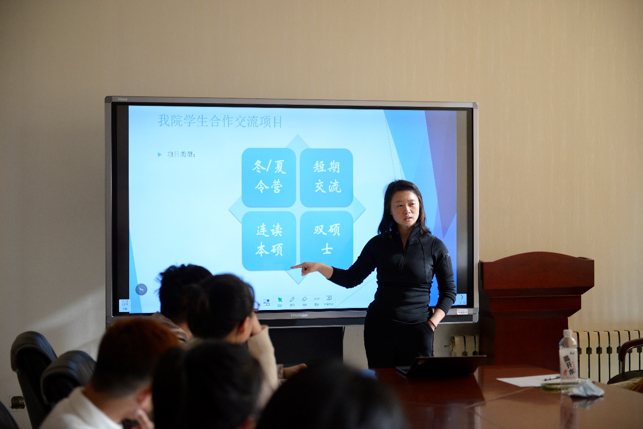 潘娜在介绍学院国际交流项目