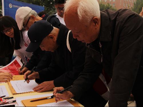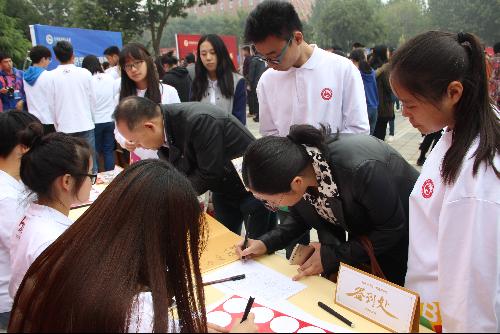早上8点整,便有校友陆续走到签到台前签到,学院志愿者统一着装,热情引导,并亲手送上了学校和学院精心准备的纪念品。拿着含有宣传册、校徽、院徽、院服等纪念品的袋子,校友难掩激动之情,仿佛又回到了刚刚踏入大学校园时怀着一颗兴奋激动地心找班级报道的那一幕。领取纪念品、合影留念后,志愿者耐心的给校友们讲解了一天的安排和行程,纪念大会、校友嘉年华、分班聚会、重品学生餐、人才培养座谈会、国际文化节琳琅满目、异彩纷呈。与此同时,在学院城市运行与应急管理实验室行政管理系(原工商行政管理系)的校友们在此签到,共叙美好的大学时光。