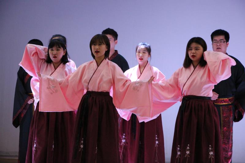 回首备赛过程,首先,在大一学生中找到符合要求并能参加此次活动的同学。在人员确定后,青橙工作室总结各个人员的特点,找到适合同学们吟诵的经典主题,把经典曲目与朗诵相结合,创造出新的想法;活动开始前一个月,青橙工作室的负责人员将曲目伴奏制作好,组织学生们利用业余时间进行一次又一次的排练。不仅要对歌曲的歌词掌握程度进行训练,也要对歌曲的曲调进行训练。当同学们对歌曲熟练后,青橙工作室的负责人员认真钻研古代民族舞视频,与参赛的同学一同出谋划策,最后编排出整个节目的队形和动作。经过一个月高效而辛苦的排练,同学们在吟诵经典活动中表现优异,最后获得了一等奖的荣誉。