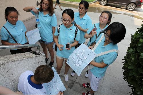 每个小组要按照之前印制好的搜索点,自由选取路线,在校园内寻找手持印章的志愿者,正确回答精心设计的问题,盖取印章后再到下一个点进行搜索,完成所有搜索点,顺利回到终点后还需要完成一项终极任务,即,所有新生用指纹和心愿卡共同绘制一副象征成长与智慧的“‘城’长‘知’树”作为新生礼物在开学典礼时送给学院,整个过程,完成时间短者获胜。