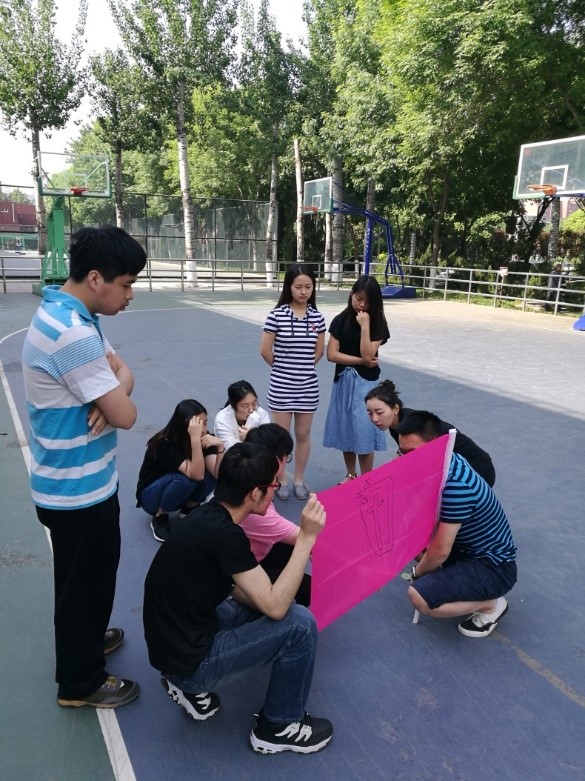 尽管时间很早,但同学们都怀着期待的心情来到了小篮球场,活动在八点钟准时开始。首先,在教练的带领下,同学们简单地热了身体,并做了几个小游戏。既让同学们舒展了筋骨,也调动了的积极性,为接下来紧张激烈的拓展竞赛做好了准备。