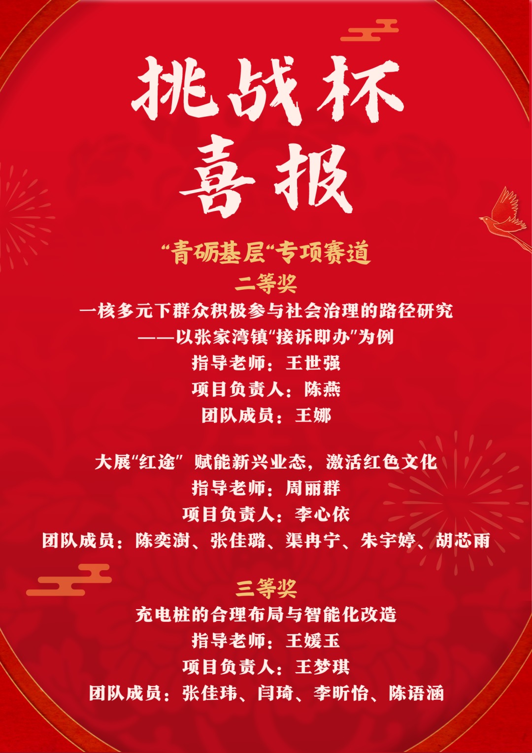 近日,“青创北京”2023年“挑战杯”首都大学生课外学术科技作品竞赛评审环节顺利结束,AV视频 学生再次取得喜人成绩,共计8个项目斩获不同等级奖项。其中,主赛道二等奖1个;“青振京郊”专项赛道一等奖1个、二等奖1个、三等奖1个;“青砺基层”专项赛道二等奖2个、三等奖1个;“青聚奇思”专项赛道三等奖1个。