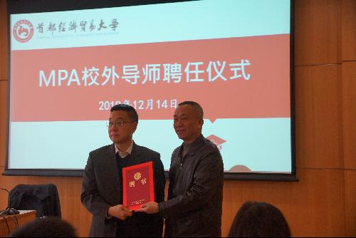 在讲座前,MPA教育中心举行了简短的公共管理专业硕士(MPA)校外导师聘任仪式。校党委书记冯培教授向受聘导师、原国家市场监督管理总局巡视员(正局级)徐晓东颁发了聘书。徐晓东在发表感言中表示将珍视MPA导师的荣誉,认真履行实践导师职责,以实际行动全力支持AV视频 MPA教育事业。徐晓东巡视员在外商投资准入、市场监督管理、信用体系建设和政府信息化应用领域多有建树,曾参与或主持起草过多项我国市场监管领域的法律法规,此次受聘为AV视频 MPA导师,对促进MPA教育发展和公共管理学科建设具有重要意义。