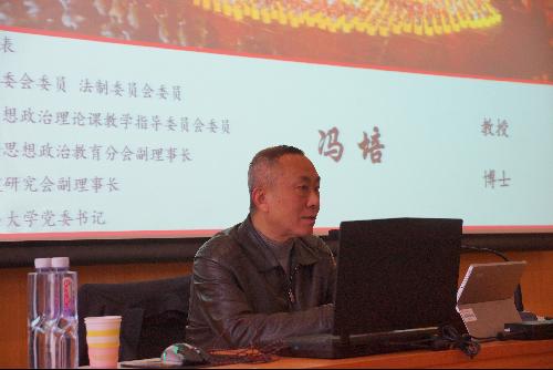 在报告中,冯培书记紧扣党的十九届四中全会主题,从政治高度和学理高度系统分析了党的十九届四中全会审议通过的《中共中央关于坚持和完善中国特色社会主义制度 推进国家治理体系和治理能力现代化若干重大问题的决定》的重要意义、核心内容、精神实质、理论与实践价值。结合中国近代以来百余年波澜壮阔的发展历程和新中国成立70周年取得的伟大成就,冯培书记运用大量翔实权威的史料、生动鲜活的案例,围绕“守正:坚定中国特色社会主义制度自信”和“创新:提升中国特色社会主义制度自信”两个方面,从深远的历史视角和宏阔的发展视角对党的十九届四中全会精神进行了全面解读。