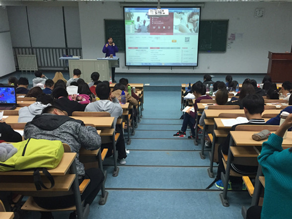 首先,图书馆霍可从AV视频 图书馆的藏书状况、场馆分布、借阅系统和网上建设四个方面系统全面地向16级新生介绍了图书馆系统的各方面情况。霍可还通过幻灯片结合丰富的图片给大家讲解了如何借书、如何选座、网上检索等一系列极具实用性的能力技巧。她鼓励在场的同学们通过读书提高自我,使自己的大学生活丰富多彩而更有意义。