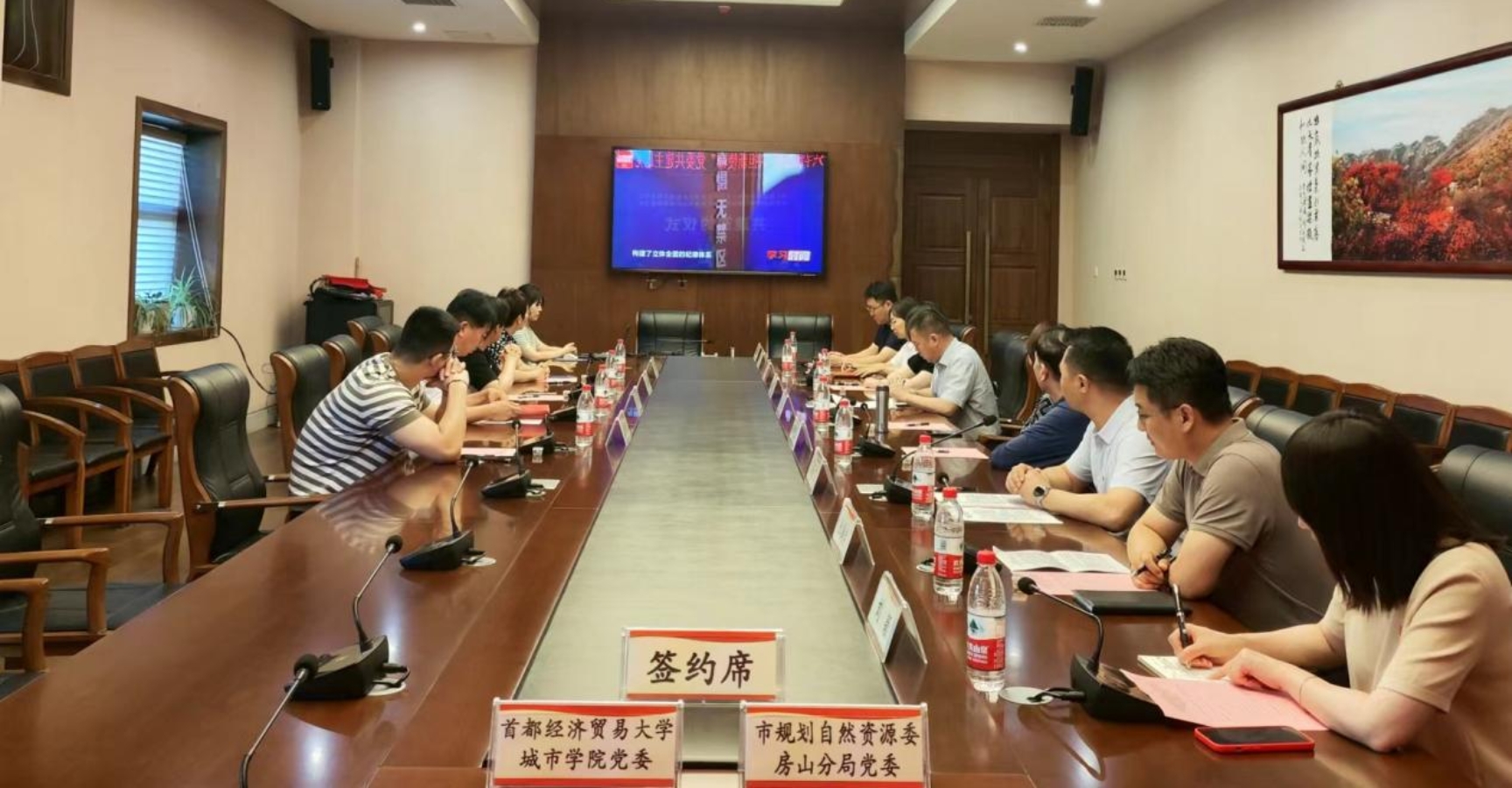 朱英颖辉表示此次共建以“共学新思想,共担新使命”为主题,创新党建与业务融合举措,凝聚双方智慧和力量,共同搭建“政院共建”平台,下一步房山分局党委将始终坚持党建引领,通过党委共建,把党纪学习成果转化为灾后恢复重建及高质量发展的生动实践,为推进房山区防灾减灾能力提升、低效用地再利用等方面积极贡献力量;积极助力人才培养,充分利用自身业务部门多的优势,加大政校合作,帮助城市学院学子加强岗位实践锻炼,提升就业能力;秉承共建共享理念,发挥好两个党委自身优势,扎扎实实开展好“1342”系列活动,为高校人才培养提供实践基地,为房山区域经济社会发展提供规自力量,为房山分局党委“共学新思想,共担新使命”党建品牌贡献更多的实践案例和创新成效。
