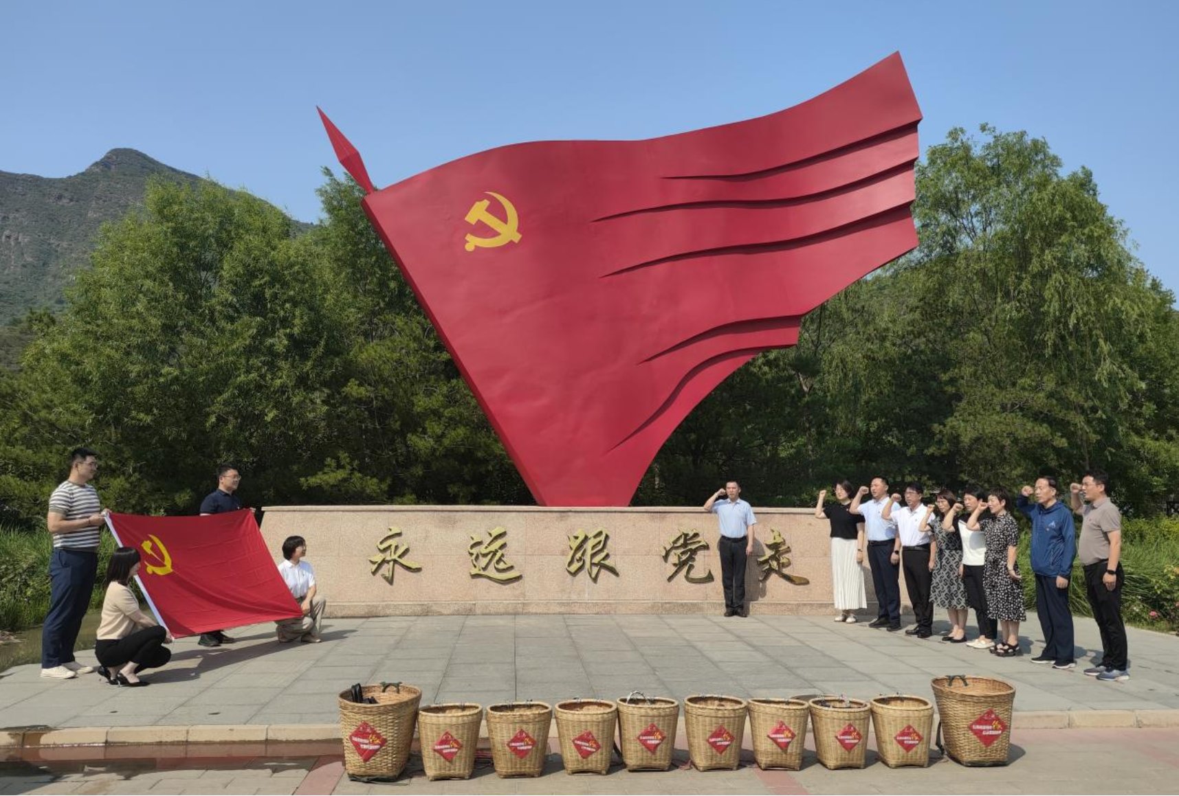 “我志愿加入中国共产党……随时准备为党和人民牺牲一切,永不叛党!”在“红色背篓”纪念馆的党旗雕塑下,面对鲜艳的党旗,在朱英辉的带领下,参加活动的党员重温入党誓词,在一字一语中找寻初心和使命,用铿锵有力的铮铮誓言表达砥砺奋进新征程的决心。大家一致表示,要在党史学习教育与党纪学习教育的双向“同频共振”中,把忠诚于党当作坚定不移的政治信仰,站稳政治立场,瞄准政治方向,矢志不渝地执行党的命令、践行党的宗旨,在中国式现代化建设中,树牢正确政绩观。在首都规划自然资源工作和高校科教育人工作中勇于担当,用知重负重、攻坚克难的实际行动,诠释为党尽责、为民造福。