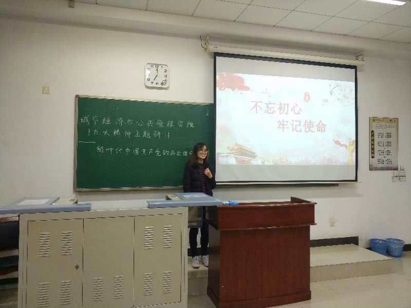 针对这一主题,陈亚杰同学进行了ppt演讲,阐述了中国共产党的历史使命,她说,在新的时代背景下,我们更应该认识好“从哪来,到哪去”的重大问题。“不忘初心、牢记使命。”习近平总书记在党的十九大报告中指出,中国共产党人的初心和使命,就是为中国人民谋幸福,为中华民族谋复兴。这个初心和使命是激励中国共产党人不断前进的根本动力。我们党从成立起,就宣布自己是代表广大工人阶级和人民群众利益的政党,在实践中和人民群众紧密联系在一起,始终代表着广大人民群众的根本利益。正是这个最大的政治优势,才使我们党从小到大不断发展,使党的事业不断从胜利走向新的胜利。