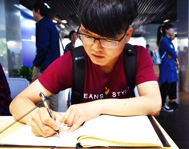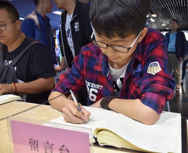 大家首先来到西侧馆。西侧馆主要为墙壁文字,《草案》内容展示其间。同学们不时驻足研看,看到《草案》中涉及的理论知识,专业理论与名词不断从同学们口中蹦出;有感《草案》的城市发展规划,憧憬北京未来15年的愿景,同学们豪情万丈,对专业学习、对未来的职业发展信心满满!不少同学情不自禁拿起笔,在留言本上留下自己的感受和意见建议。