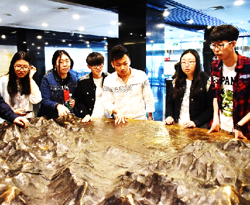 而后,同学们来到东侧馆,主要参观了规划沙盘和京津冀协同展区。不少同学在沙盘上找到了自己的家和学校、学院、教学楼、住宿楼。大家积极联系城市及城市群规模经济、城市经济增长理论以及城市经济空间利用与发展模式,研讨和阐释了京津冀的协同与共同发展,对北京非首都功能的疏解和城市病的治理,又有了新的认知和感受!