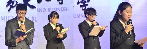线上投票环节。现场观众的可以通过学院的“青橙部落”微信公众平台为自己心怡的选手进行投票。投票期间主办方邀请朱荩臣老师做了精彩的读书经验分享。他结合自己的学习生活经验,向同学们分享了“多读书,勤读书,读书会让人收获许多财富”的成长道理。