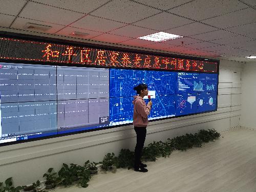 二楼是和平区社会组织孵化中心为老服务专区,为不断满足老年人需求,孵化社会力量,采取无偿、抵偿、有偿三种方式为老年人提供服务,回应政府的关切,满足社会需要。现入驻的社会组织有阳光老年服务中心(中华遗嘱库)、泰康家政服务中心和和平区居家养老应急呼叫服务中心。其中应急呼叫服务中心使同学们眼前一亮,为及时发现空巢、孤寡、高龄老人在家发生意外,中心建立了先进的紧急呼叫系统,一旦老人家中的报警器向中心求助,中心可根据情况分别调动专业队伍实施救援。