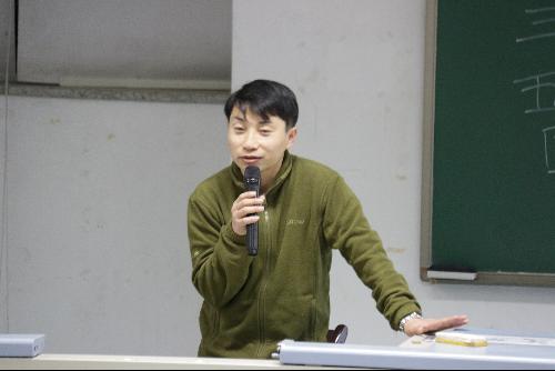 之后,公共事业专业老师崔高鹏老师上台宣讲。崔老师在台上就2015-2016学年公共事业专业所组织的“济南调研社会组织”-“ISD(爱山东)公益创新空间”、参与”踏瑞杯”社会工作多媒体案例开发大赛决赛暨颁奖仪式协同开展的“南京考察学习”活动及在雄县白洋淀的调研等活动做了展示。
