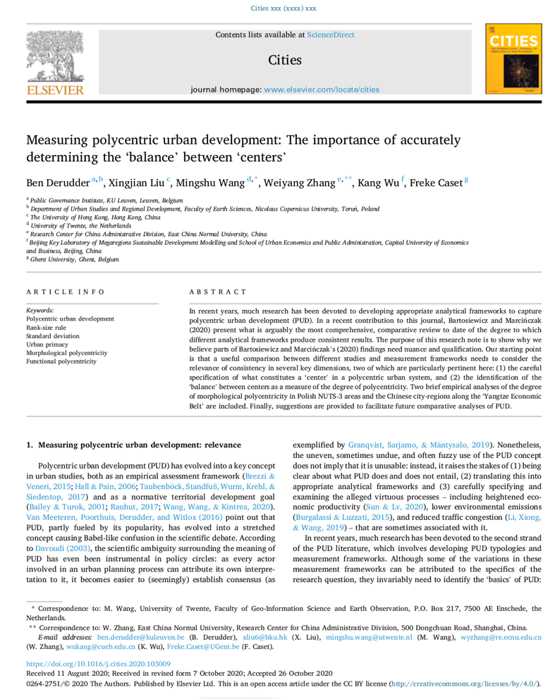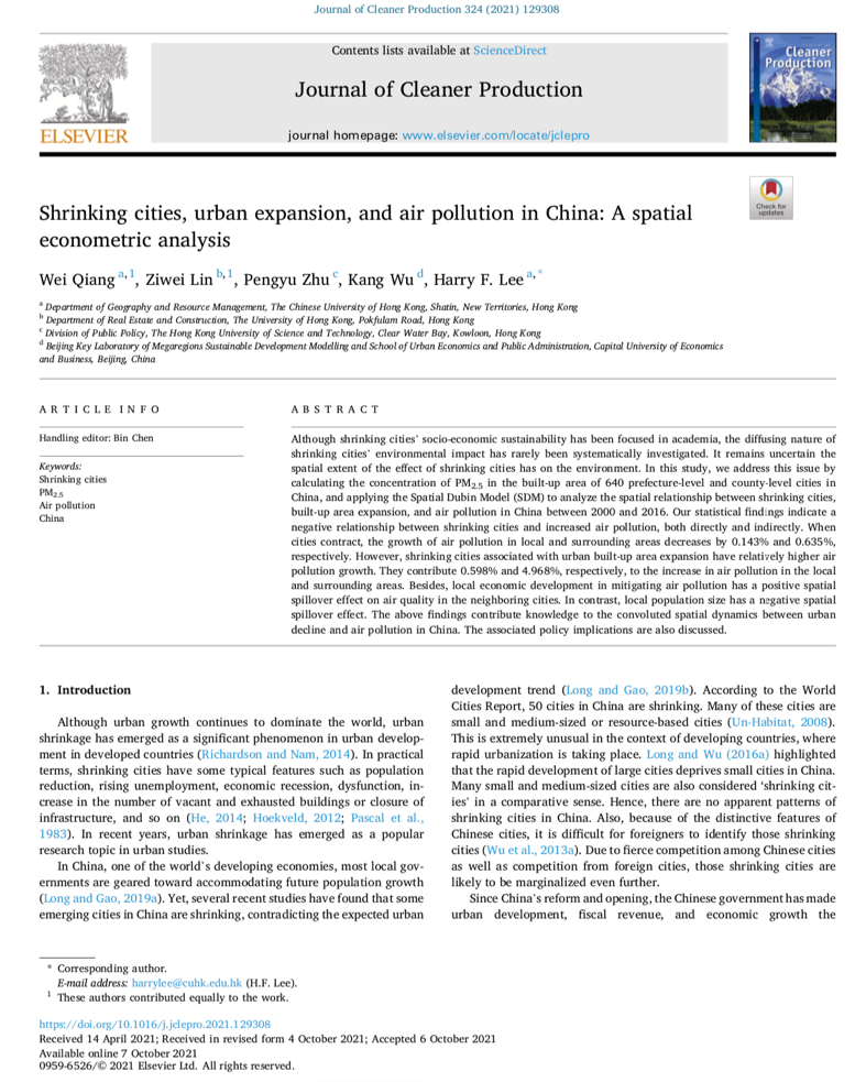 吴康教授主要从事城市群与城市网络、大数据与超大城市治理、城镇化与城市的增长与收缩研究,除了本篇论文外,与比利时鲁文大学、香港大学等合作的多篇国际A1论文今年发表在《Journal of Cleaner Production》、《Cities》之上。