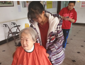 同学们这次主要是为福利中心的五保户老人们服务,协助那里的工作人员给老人们理发,并打扫理发后的地面,接着送那些行动不便的老人,还分小组进入老人房间陪老人聊天。福利中心的环境朴素,楼道干净,每个房间门口都有老人们的个人信息,管理得井然有序,让同学们萌生了毕业后搬来这里住的想法。