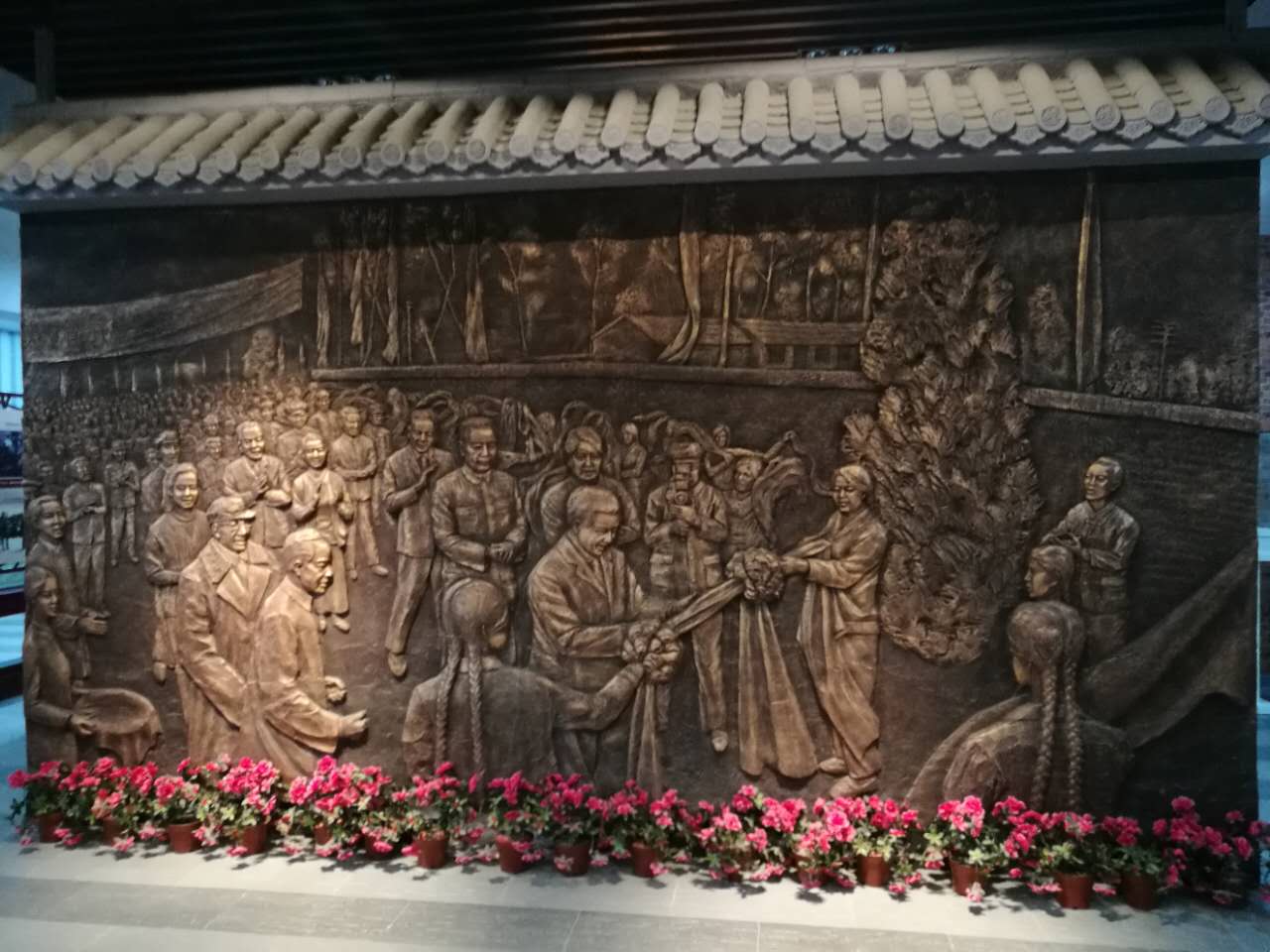长阳文化宫一共有两层组成。第一层展厅为长阳镇的历史记载于中柬友好关系象征物品的展览厅。进入第一个展厅为长阳的大事记,记录了长阳的千年的历史及新中国成立以后重要的历史事件。师生们通过讲解员的讲解了解到了长阳镇的历史沿革,从殷商时期一直到今天的长远历史。其中最为重要的当属中柬友好人民公社的文字、物品、视频记载。通过缩减版历史的工厂大门后,师生们通过大屏幕观看了周恩来总理当年与西哈努克亲王共同前往长阳镇观看生产技术与民间节目的视频。仪式中,周总理一行在公社院内、大门口影壁前一同植下五科冬夏常青树,象征着中柬两国人民友谊长存。同学们一并看到了西哈努克亲王当年所带来的礼物真品与共同植树的铁锹。整个展厅弥漫着厚重的历史气息与中柬深厚的友谊。