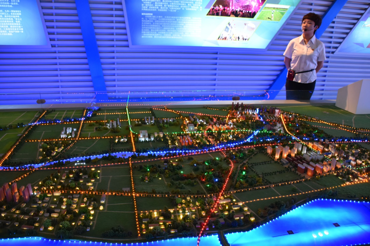 展厅的第二层为长阳镇现代化的建设布局。通过完善规划体系,打破发展瓶颈,长阳镇在房山区所有的镇中取得了不俗的成绩。“智慧长阳开启新航程,魅力新城引领新跨越。”长阳镇的发展提出了几个标准:1.优化资源,打造优质教育学区。2.品牌营销,打造京西南时尚休闲名片。最后观看了长阳镇的布局沙盘与历年音乐节的视频结束了长阳镇文化宫的参观之旅。