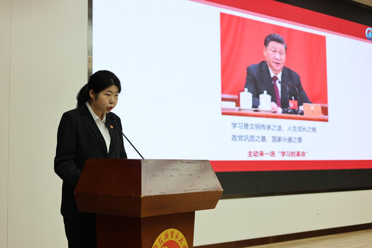 杨灵涵分享了作为一名研究生,个人学习科研的成长经历。她鼓励同学们要主动投入学习,夯实学习基础,拓展学习思路,掌握先进方法,敢于迎难而上持之以恒;要在生动火热的实习实践中感受祖国发展的巨大成绩,感悟青年学子肩负的时代使命,勇于投身基层一线,成为新时代国家发展建设繁荣富强的主力军和生力军。