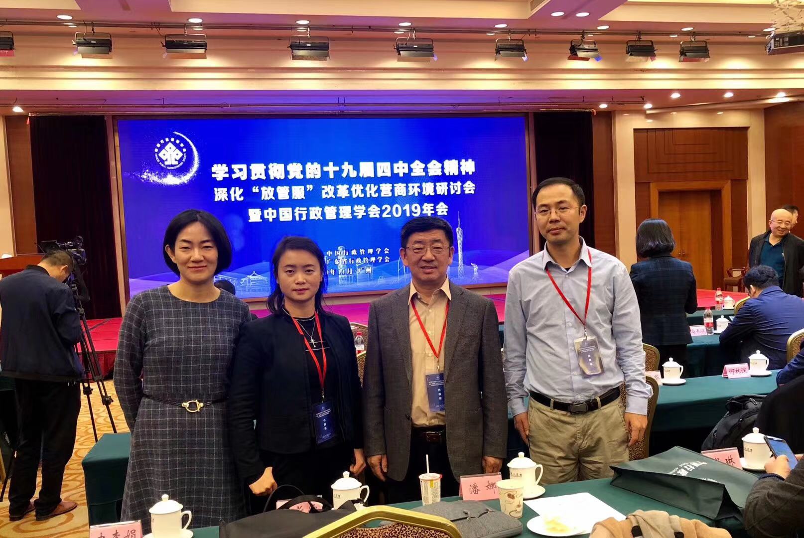 11月29日,“学习贯彻十九届四中全会精神深化‘放管服’改革优化营商环境”研讨会暨中国行政管理学会2019年会在广州市隆重召开。广东省人民政府副省长张虎,中国行政管理学会会长、全国人大常委、全国人大社会建设委员会副主任委员江小涓,中国行政管理学会原荣誉会长、行政管理学奠基人夏书章教授出席会议,来自学术界和实务部门的近三百名专家学者进行了研讨交流。AV视频 城市学院张国山院长带领行政管理系潘娜、王蕾、闫志刚三位教师参加了会议。 本次年会为深入学习贯彻四中全会精神,聚焦“政府治理与‘放管服’改革”“...