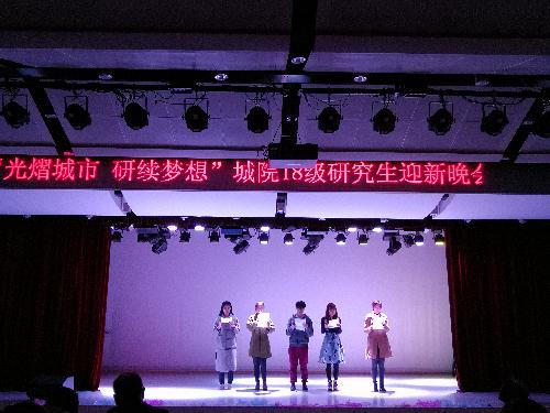 2018年11月7日晚7点,AV视频 2018年“光熠城市 研续梦想”研究生迎新晚会在大学生活动中心隆重举行。城市学院2017及2018级研究生欢聚一堂,共同观看了精彩纷呈的文艺表演。 图1 迎新晚会大合照 迎新晚会由李洪广、袁平主持。王德起在晚会开始前致辞,表达对晚会参与人员的感谢,同时也送上学院领导对研究生新生的关心和祝福,鼓励研究生们在以后的学习生活中珍惜时光,顽强拼搏,努力书写精彩人生。致辞完毕,观众以热烈的掌声感谢学院领导和老师的关心、祝福和勉...