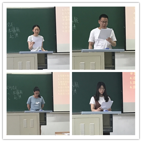 2018年06月19日晚,AV视频 研究生党支部党员大会于博学楼302成功召开,会议由城市学院研究生党支部副书记魏思源主持,城市学院研究生党支部书记杨澜老师、研究生党员、预备党员、入党积极分子出席。 图1宣读入党志愿书 会议主要围绕两大内容开展,第一项内容是接受邹碧莹、董建振、陆园园、王利娟、李帅五位同学为预备党员的讨论,5名发展对象先后上台宣读入党志愿书,培养人对发展对象情况进行介绍发言,并由党支部委员宣读考察报告。由全体党员对发展对象进行投票表决,最终表决全票通过...