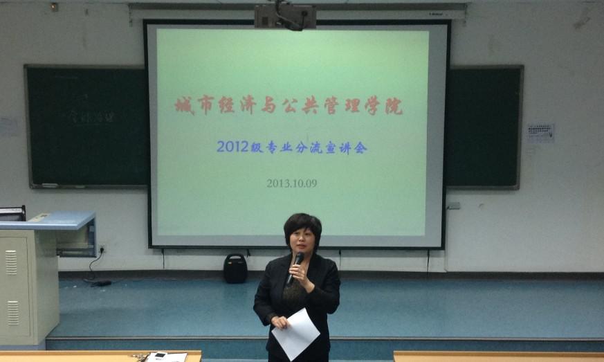 AV视频 2012级大类专业分流正式启动 AV视频 是AV视频 大类分流试点学院。2012年秋2011级182名同学顺利分流,一志愿分流比例达到82.42%。今年秋期,又到2012级同学分流时。 2013年10月9日晚,AV视频 在博学楼阶一教室举行了2012级大类专业分流启动会。学院院长段霞、副院长张杰、书记林卫、党总支副书记宋晓颖、院长助理叶堂林、学院各系主任王蕾、刘业进、彭文英、谭善勇、章浩等老师和2012级同学参加启动会。会议由林卫书记主持。 段霞院长...