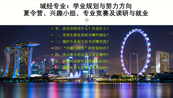 为有效应对新冠疫情,响应学校线上线下实习的通知,6月27日,城市管理国家级一流本科专业建设点举办了暑期线上实习+”兴趣与创客“系列学术活动的第一次讲座,本次讲座由城市经济管理系主任谭善勇老师主讲。 谭老师从“读研读本读什么”“本科生推优保研有哪些规定?“城经专业相关夏令营哪里找?”“《兴趣与创客》活动小组的价值何在?”“重点推介的竞赛主要有哪些?”“国内外读研申请资格与应试?”“城经专业主要就业单位如何?”等七个方面进行了深入细致的介绍,为同学们指出了本科和未来...